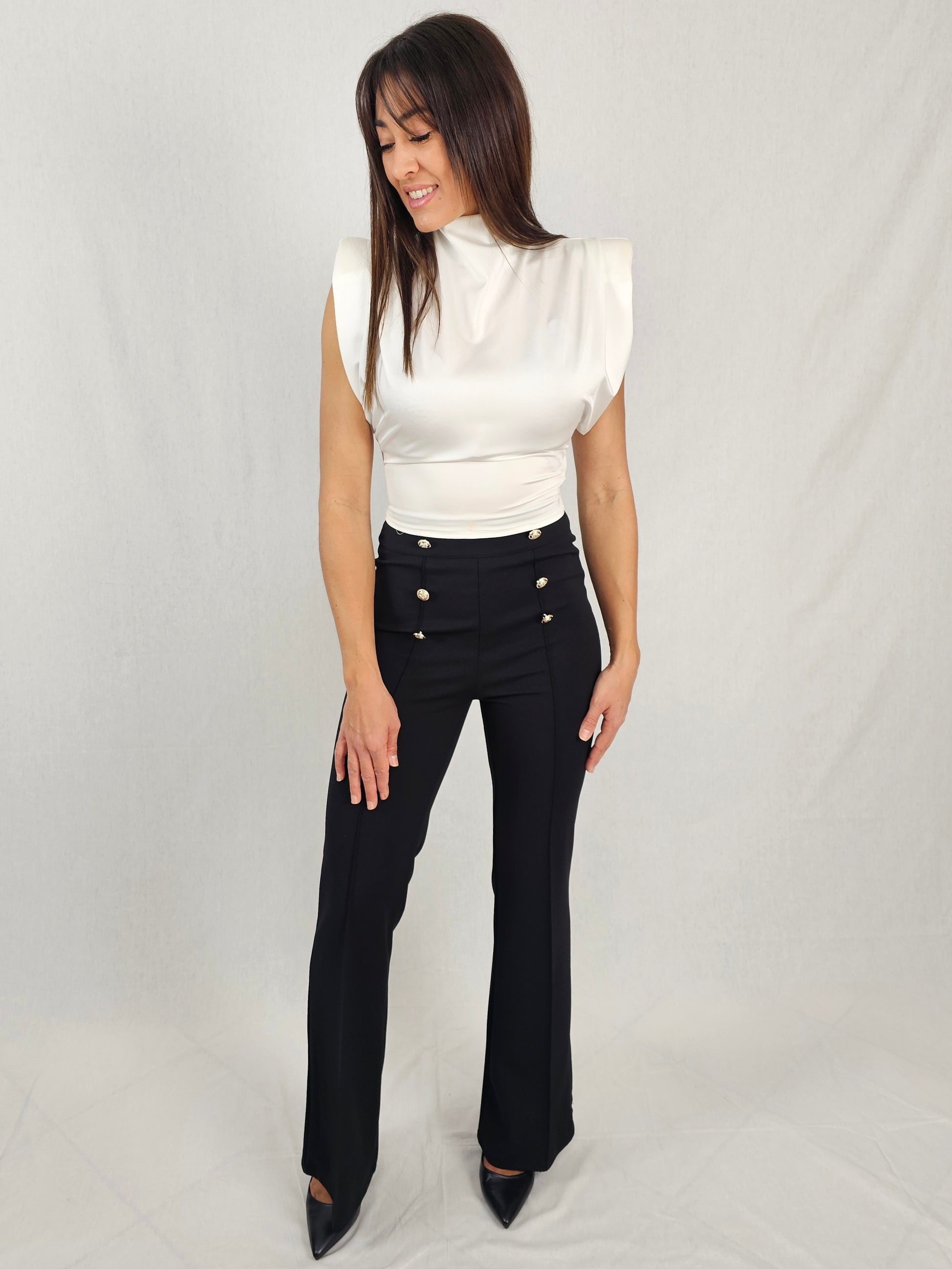 Ce haut sans manches offre un design minimaliste et intemporel, parfait pour les garde-robes modernes. Son col montant structuré ajoute une touche d'élégance, tandis que sa coupe ajustée sublime la silhouette avec finesse.Polyvalent et chic, ce haut est idéal pour composer des tenues habillées ou rehausser un look décontracté. Une pièce essentielle qui allie confort et raffinement.