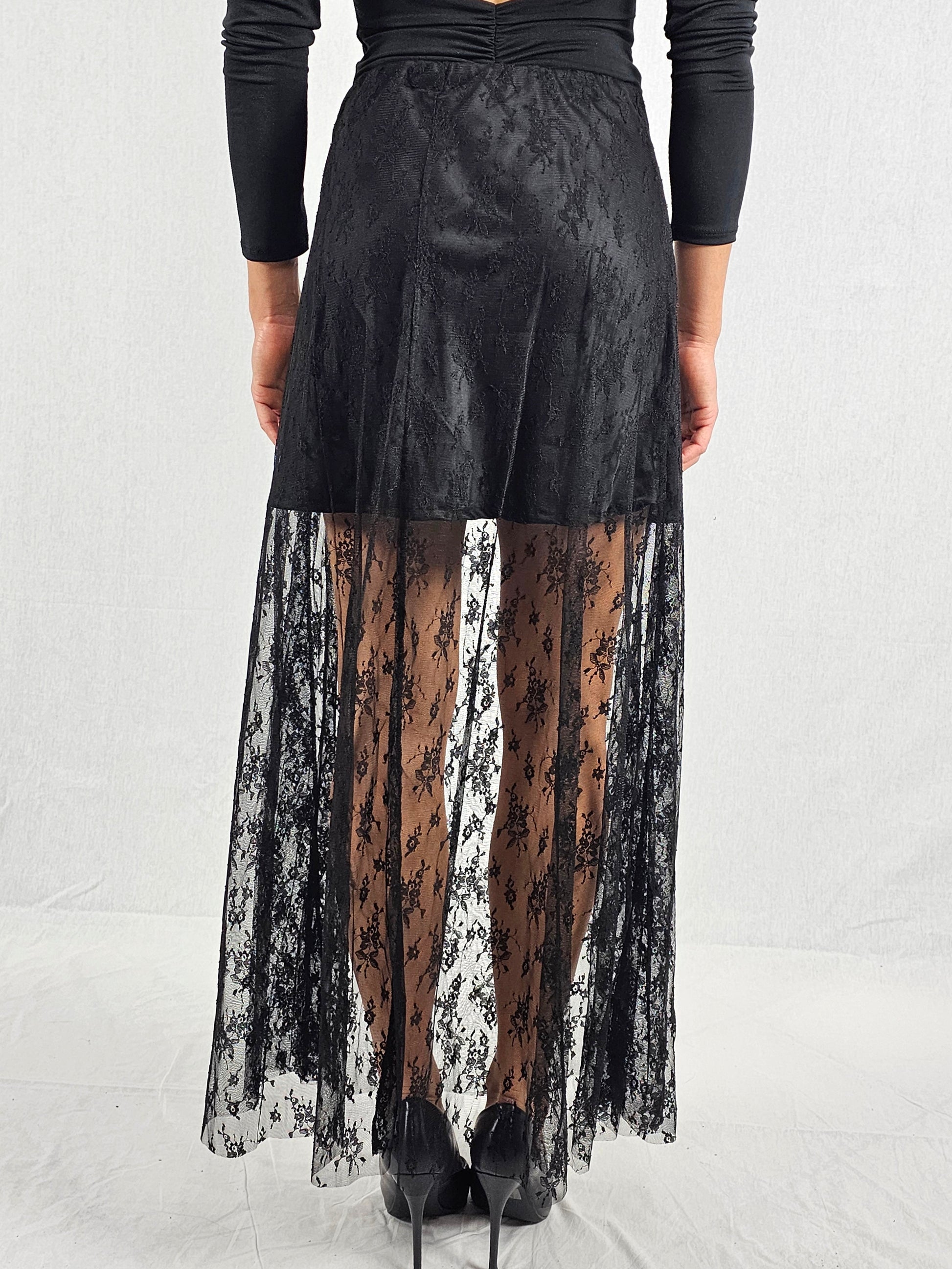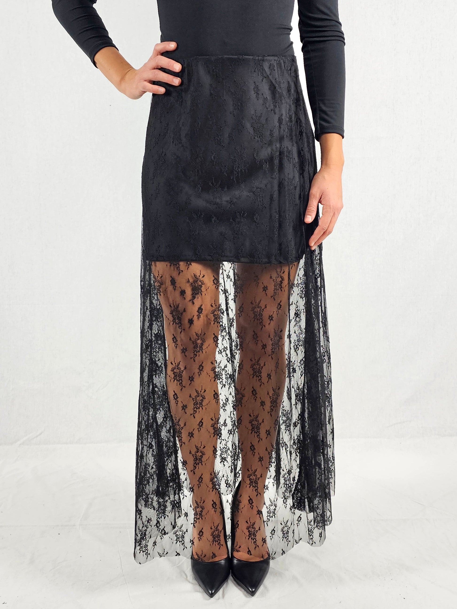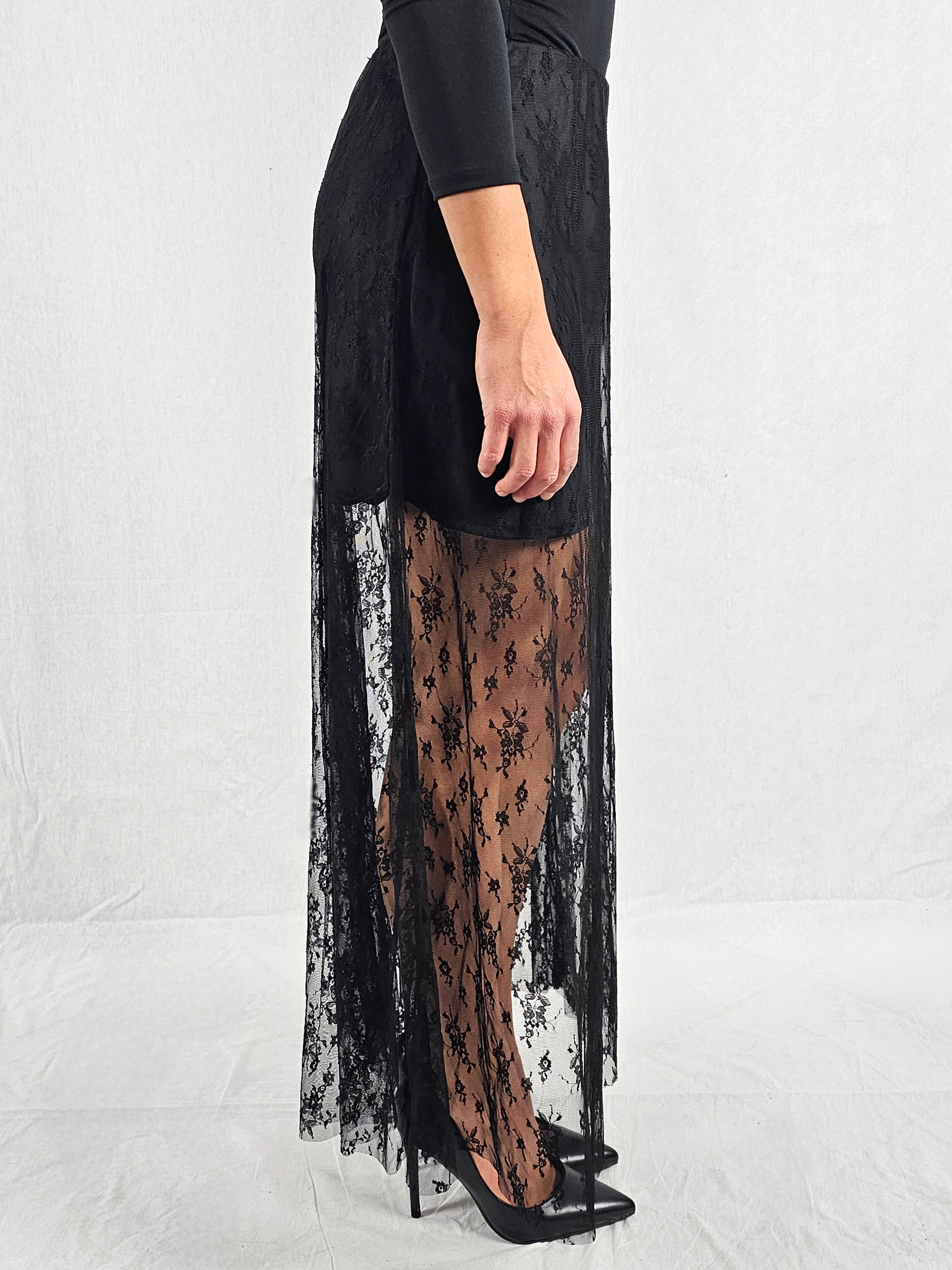 Osez l'originalité avec cette jupe élégante et audacieuse ! Dotée d'une jupe noir uni et d'une superposition en dentelle noire transparente, cette pièce marie à la perfection modernité et féminité. Une option idéale pour un look à la fois tendance et sophistiqué.
