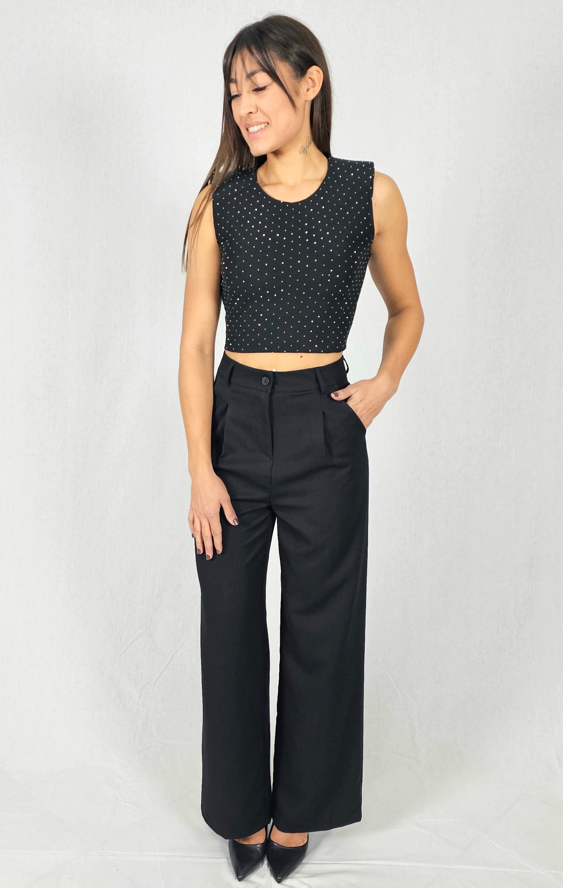 Ce pantalon large noir est un choix parfait pour un style chic et confortable. Avec sa coupe ample et fluide, il s'adapte aussi bien aux looks de bureau qu'aux sorties décontractées.