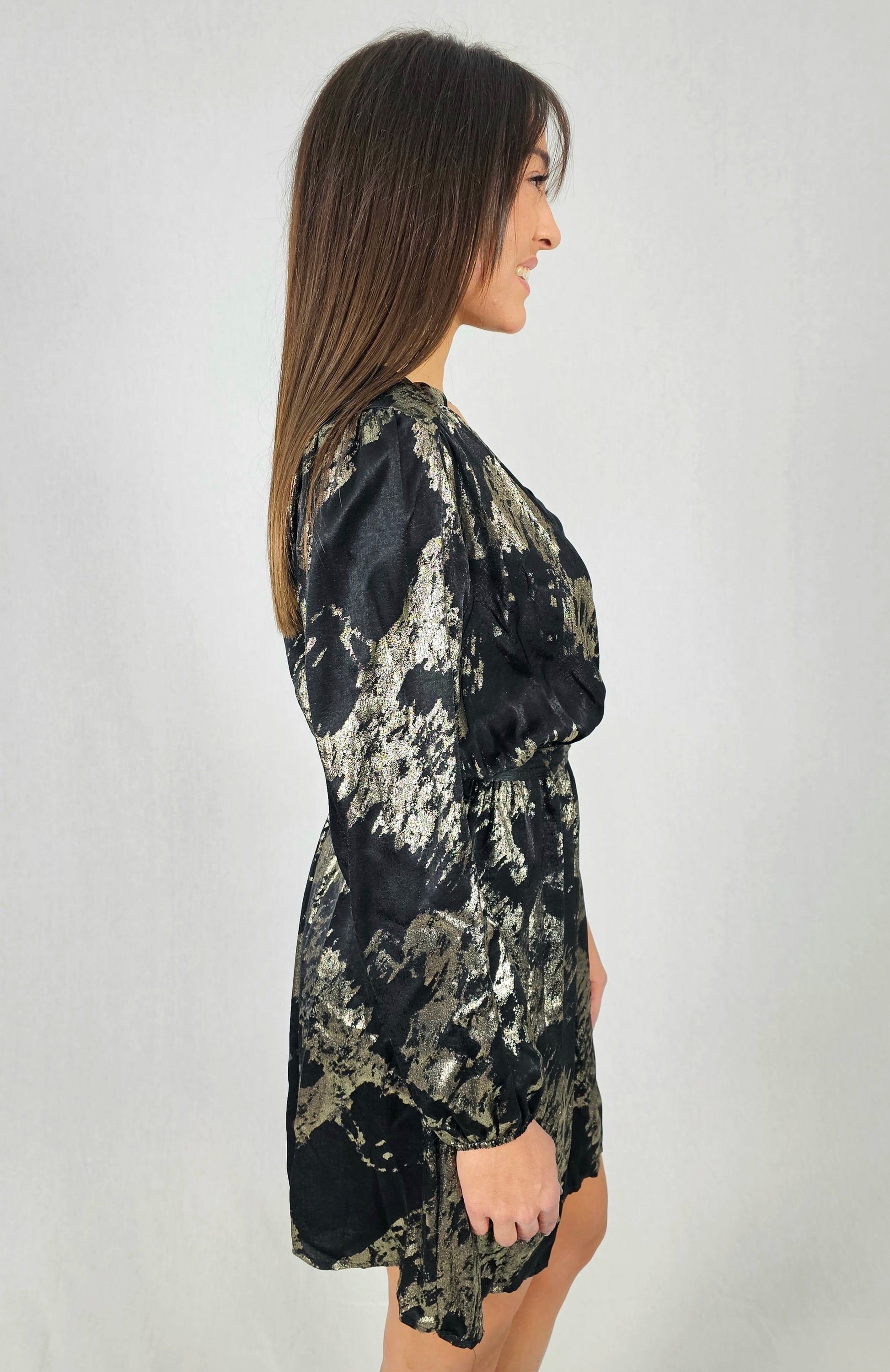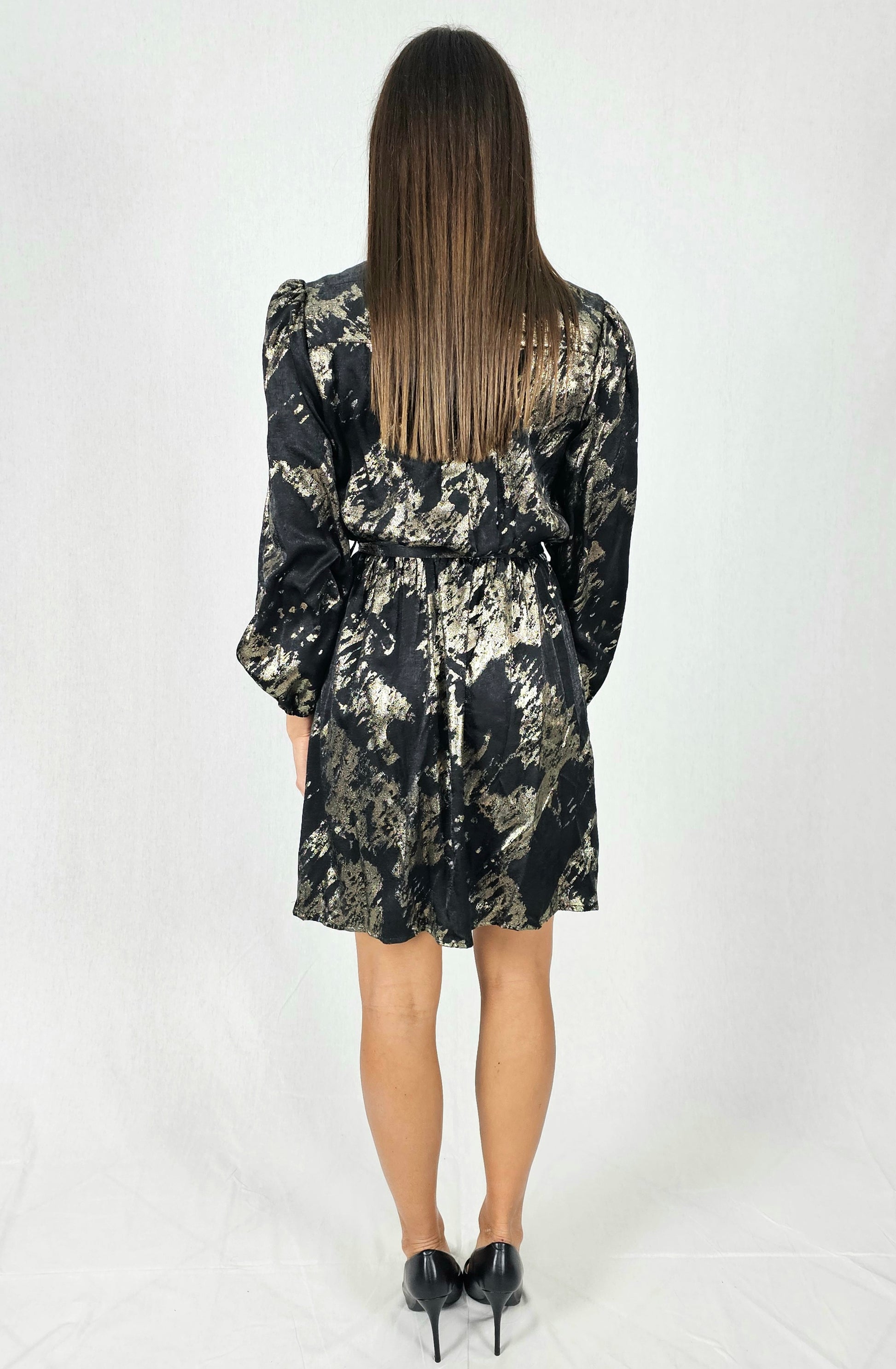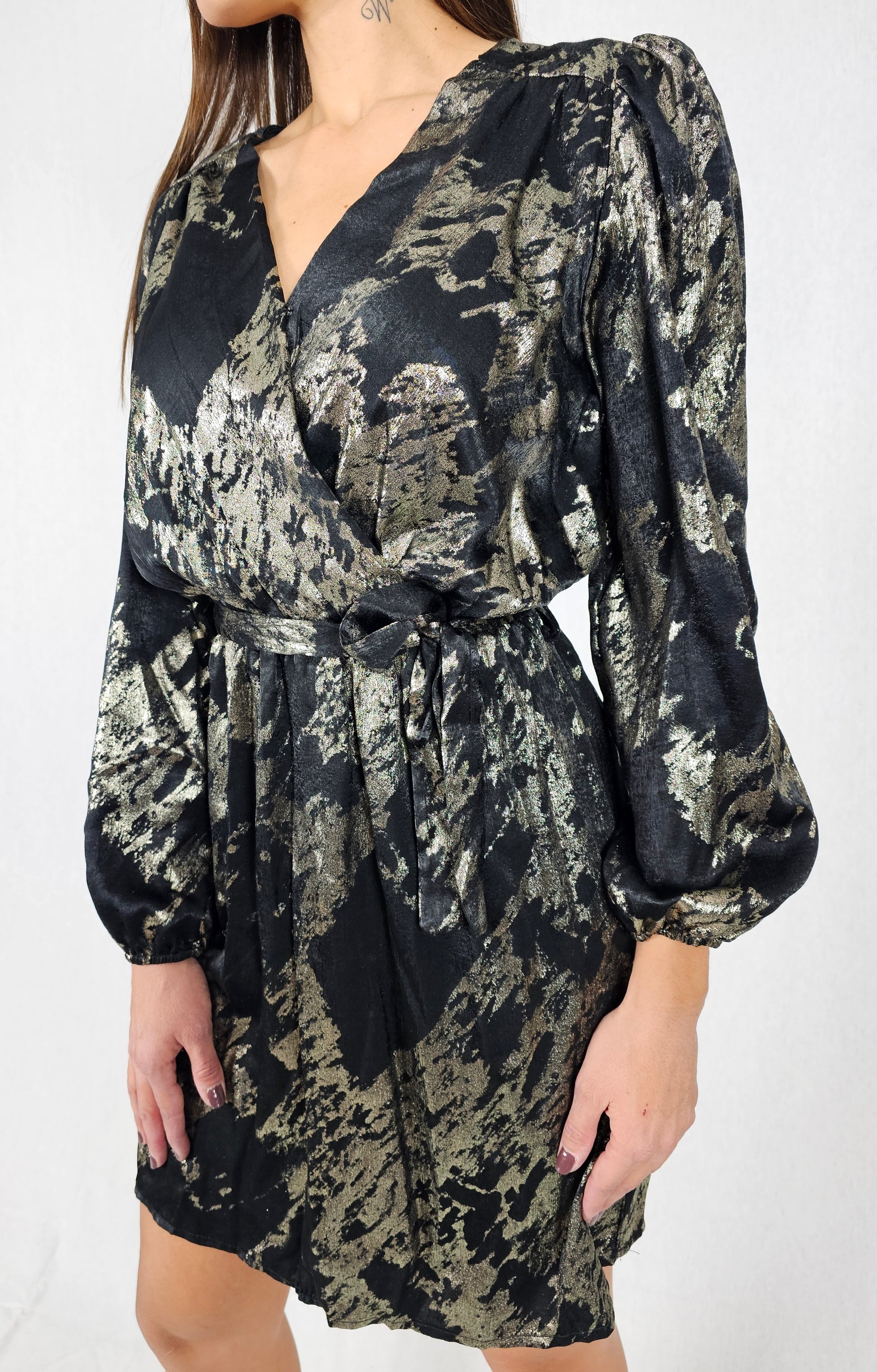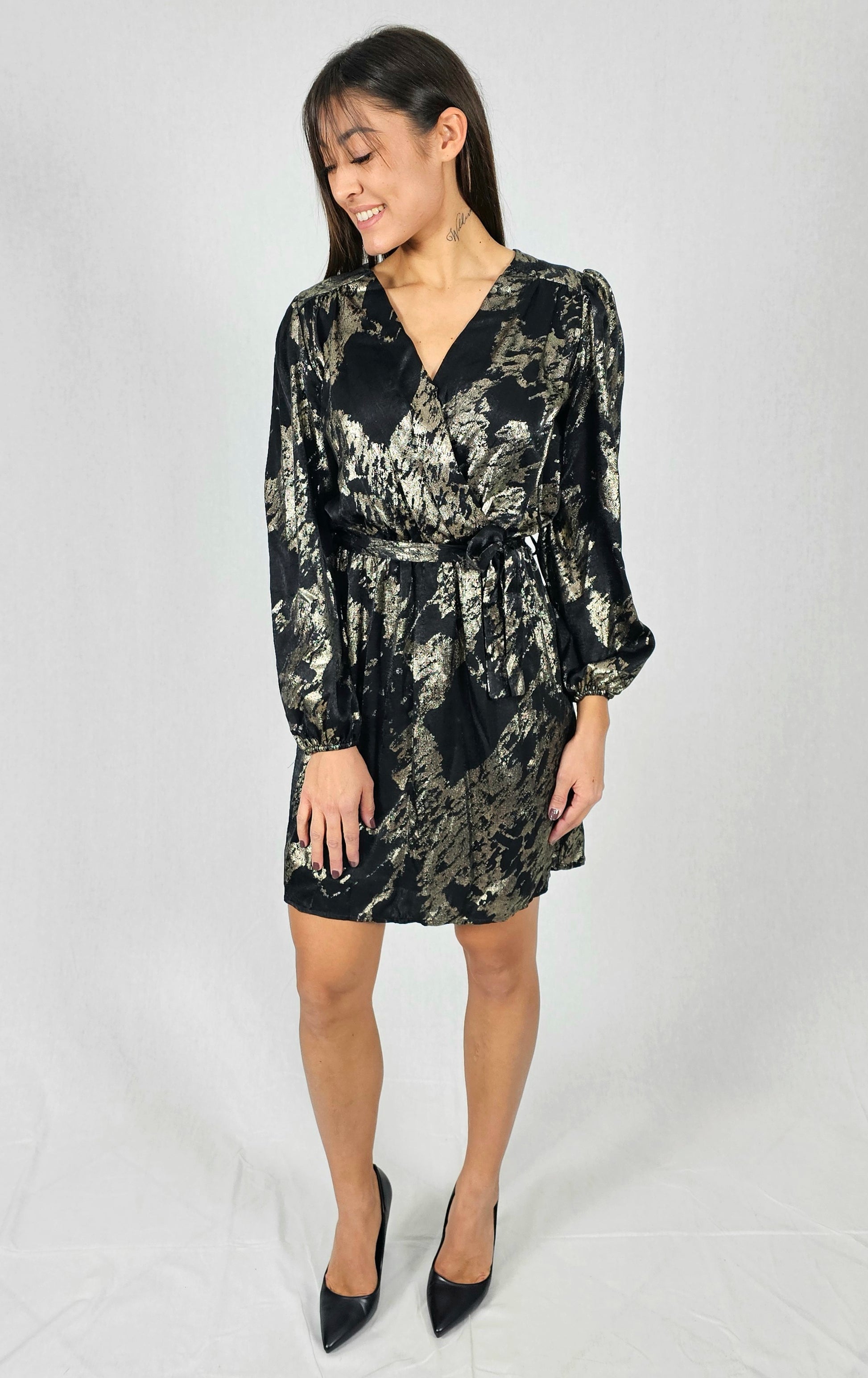 Cette robe cache-cœur de couleur incarne l'élégance et la féminité. Avec son effet brillant et sa coupe fluide, elle est idéale pour les occasions spéciales ou les soirées habillées.