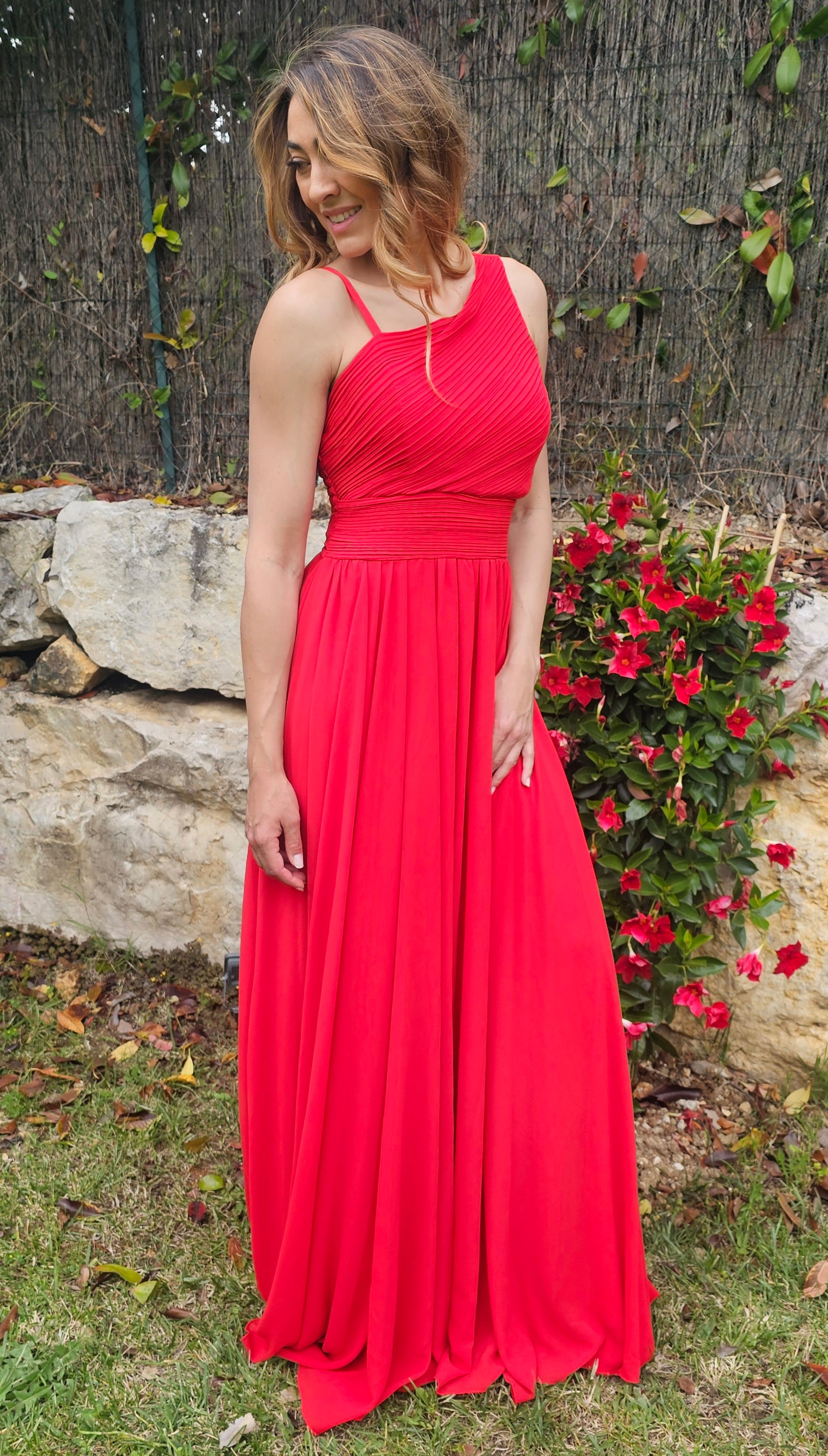Robe de cocktail à une épaule. Fabriquée dans un tissu léger et agréable,elle offre un confort optimal. Son style se marie harmonieusement avec des escarpins pour une touche encore plus élégante.