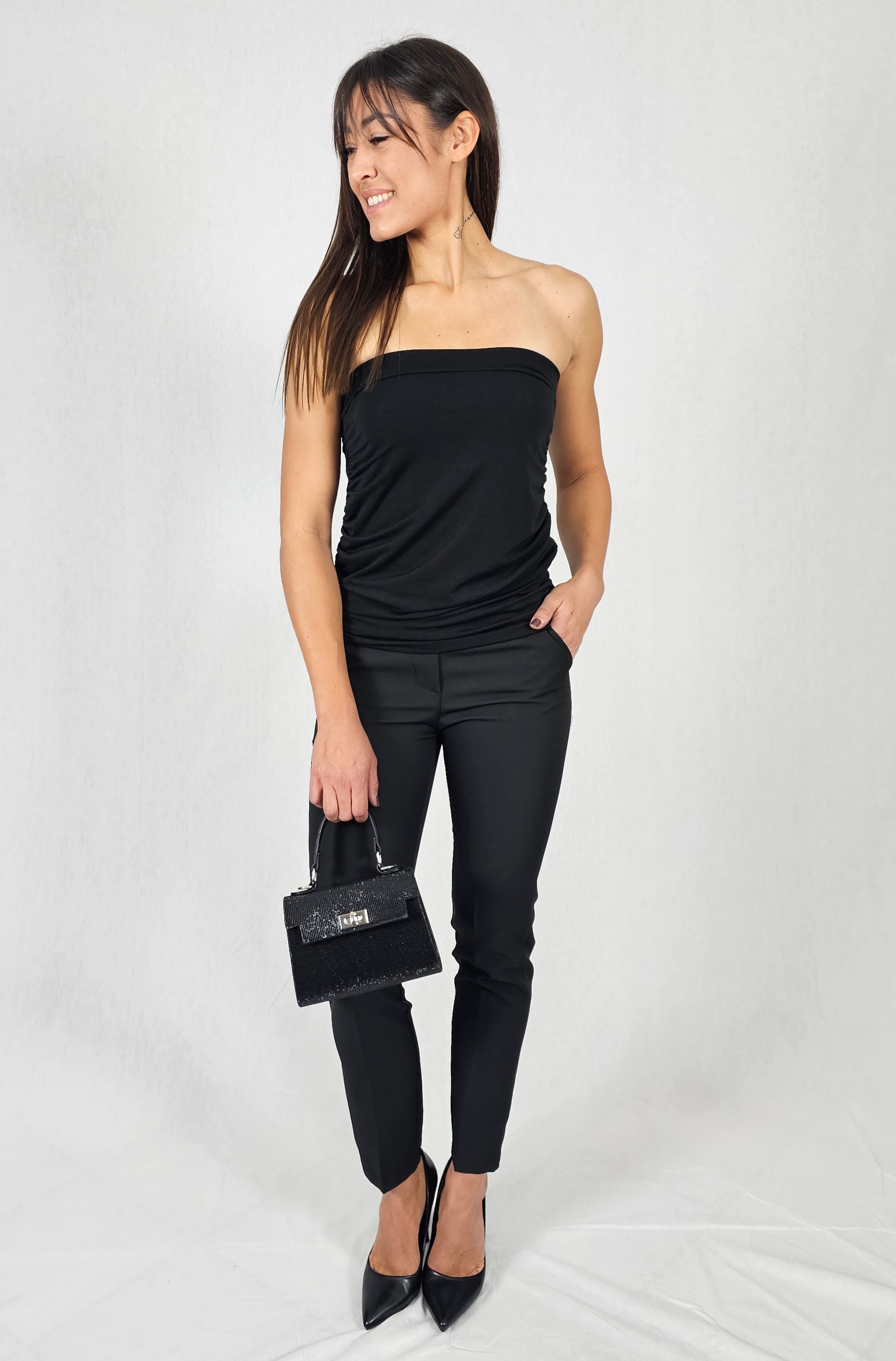 Ce top bustier noir est un indispensable pour un look chic et moderne. Avec sa coupe sans bretelles et son style minimaliste, il s’adapte parfaitement à des tenues casual ou habillées.